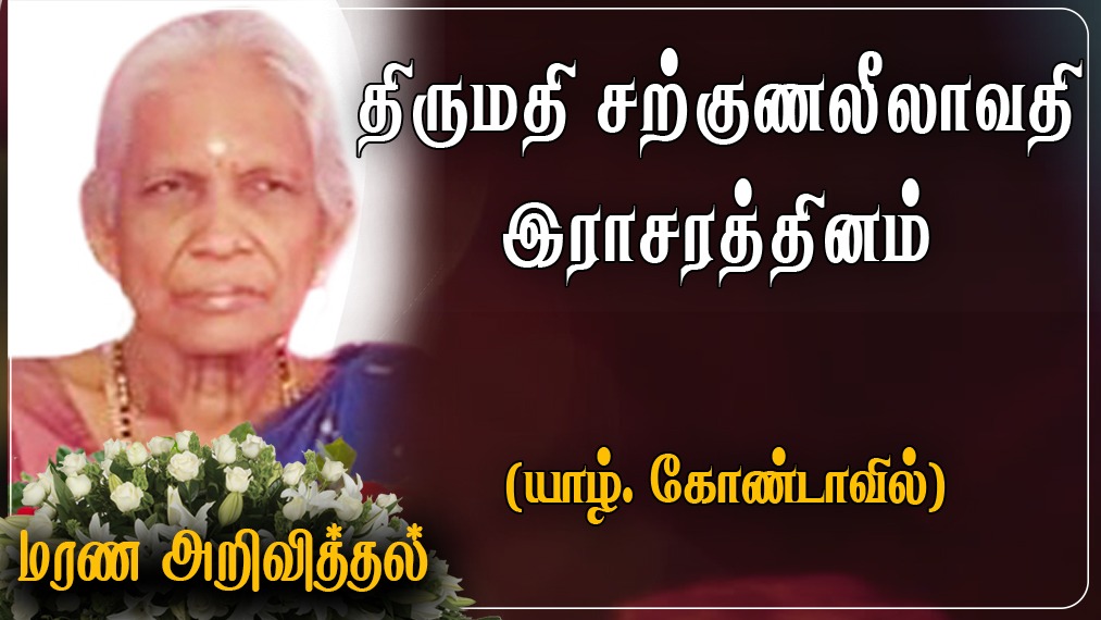 யாழ்.கோண்டாவிலைப் பிறப்பிடமாகவும், இணுவிலை வதிவிடமாகவும் கொண்ட சற்குணலீலாவதி இராசரத்தினம் அவர்கள் 26-07-2021 திங்கட்கிழமை அன்று காலமானார்.
