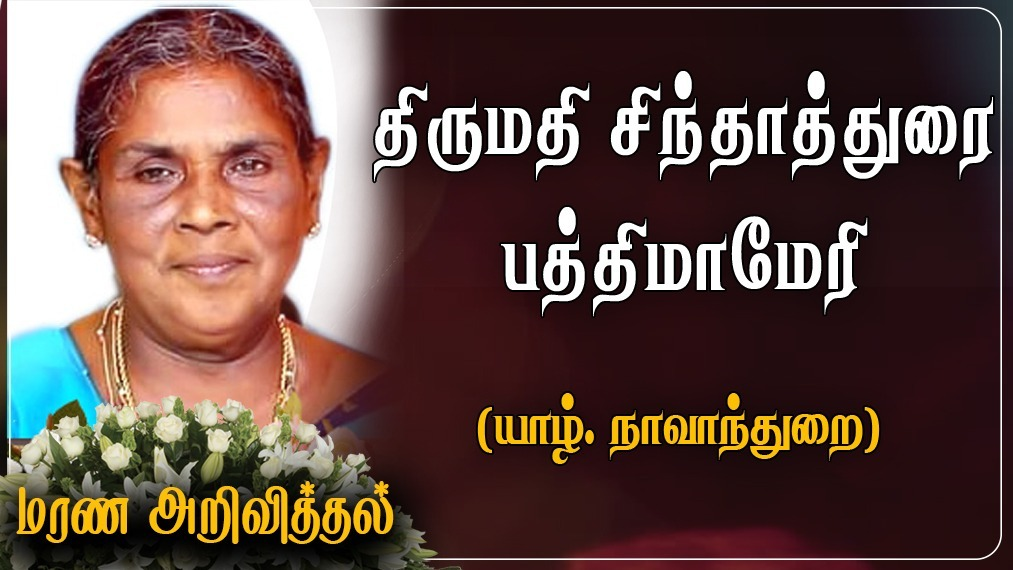 யாழ். நாவாந்துறையைப் பிறப்பிடமாகவும், வசிப்பிடமாகவும் கொண்ட சிந்தாத்துரை பத்திமாமேரி அவர்கள் 28-06-2021 திங்கட்கிழமை அன்று காலமானார்.