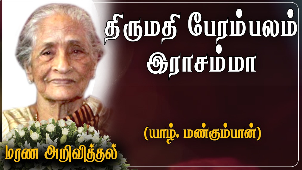 யாழ். மண்கும்பான் 5ம் வட்டாரத்தைப் பிறப்பிடமாகவும், வதிவிடமாகவும் கொண்ட பேரம்பலம் இராசம்மா அவர்கள் 26-07-2021 திங்கட்கிழமை அன்று காலமானார்.