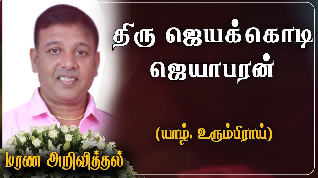 யாழ். உரும்பிராயைப் பிறப்பிடமாகவும், பிரான்ஸ் Cannes ஐ வதிவிடமாகவும் கொண்ட ஜெயக்கொடி ஜெயாபரன் அவர்கள் 30-06-2021 புதன்கிழமை அன்று காலமானார்.
