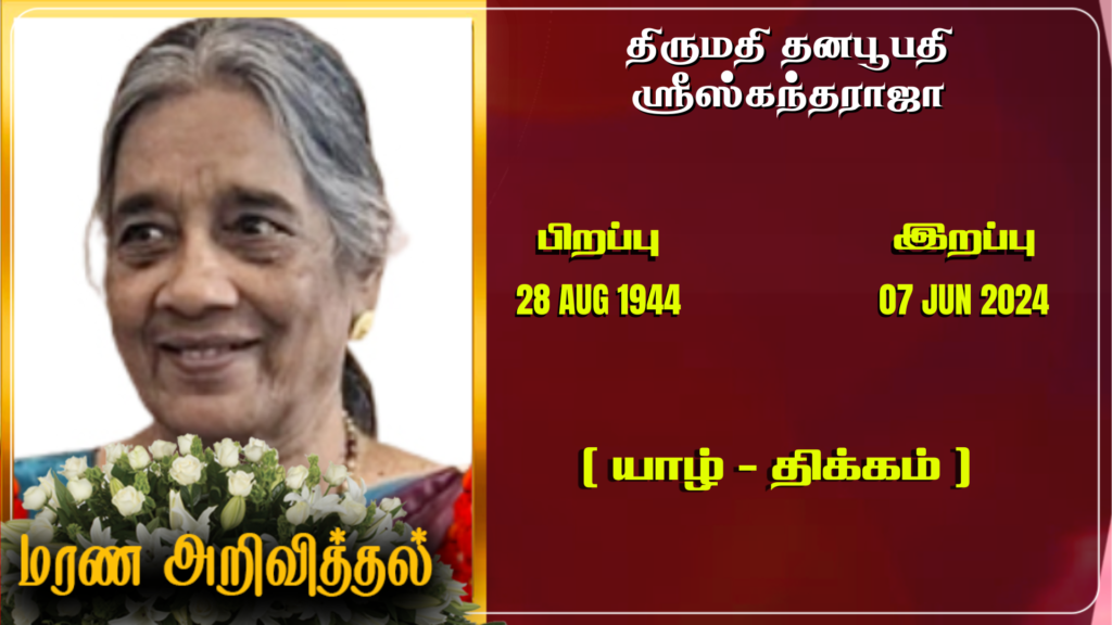 யாழ். திக்கத்தைப் பிறப்பிடமாகவும், பிரித்தானியா லண்டன் Lewisham ஐ வதிவிடமாகவும் கொண்ட தனபூபதி ஸ்ரீஸ்கந்தராஜா அவர்கள் 07-06-2024 வெள்ளிக்கிழமை அன்று லண்டனில் இறைவனடி சேர்ந்தார்.